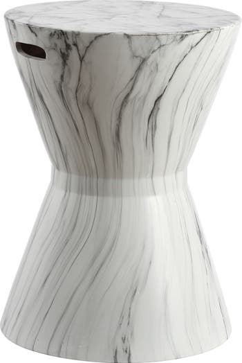 Inspired by the hourglass shapes of African drums, our ceramic drinks table is a modern, Minimalist accent piece. A faux Carrara-Marble glaze gives this lightweight, affordable stool a high-end look. Try a pair in front of your sofa for a stylish cocktail hour.