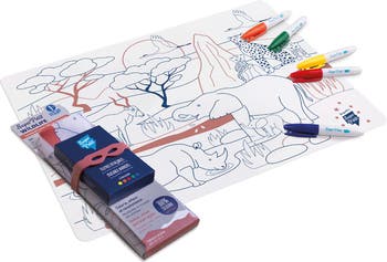 The ultimate in portable crafting, this wild savanna scene is printed on a reusable silicone coloring mat your little artist can decorate again and again.
