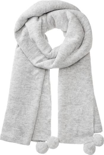 Once the party's over, throw on this pompom-tipped scarf—knit from cozy-warm baby alpaca-blend yarn—and make your glamorous exit.