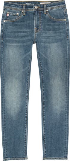 Vintage-inspired styling is the name of the game with faded, hand-finished jeans fashioned from stretch denim for everyday comfort.