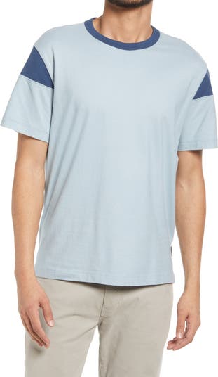 Color-blocked shoulder insets bring sporty vintage vibes to a T-shirt made for comfort in any era from soft, breathable cotton.