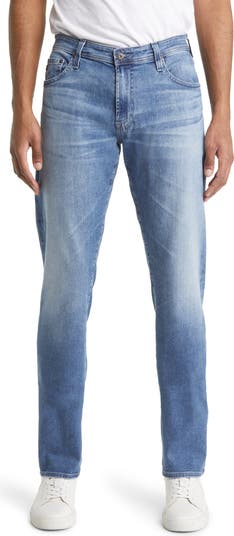 Cut from Japanese denim with fading for vintage character, these straight-leg jeans fit comfortably through the seat and thighs and slim from knee to hem.