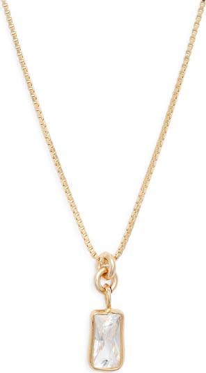 A rectangular bezel-set cubic zirconia shines on a delicate box chain necklace.