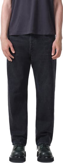 A versatile dark wash and relaxed fit define these retro-inspired jeans cut from nonstretch organic-cotton denim.