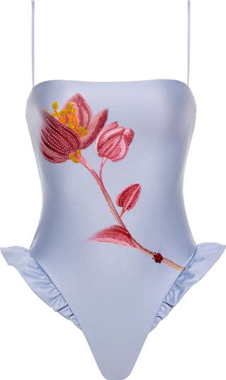 The Montaña Cauca one-piece features a bold square neckline and delicate straps and ruffled details on the hips for a modern, flattering silhouette. Crafted from recycled polyester, it offers UPF 50 sun protection. Style it with the Lavanda Paraiso pareo for a polished poolside look.