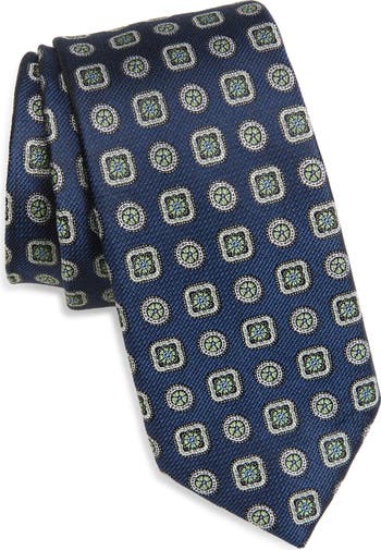 Mixed medallions bring smart, neat detailing to this lustrous silk-jacquard tie that adds polish and distinction to any semiformal look. It pairs well with smoother fabrics and solid colors, but there's always room for mixing patterns and textures to showcase your personal style.