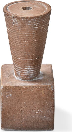 - The Ahmar Small Pillar Taper Candle Holder in terracotta brown is an ideal gift for the season, enhancing everyday decor with its elegant design and hand carved texture, perfect for creating a warm atmosphere in any room.