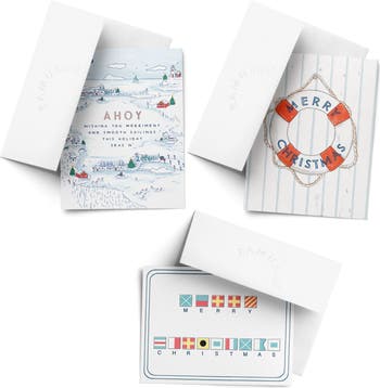 Ahoy Holiday, Lifebouy Merry Christmas, Nautical Flags Winter/Holiday/Christmas Greeting Card Pack Sets