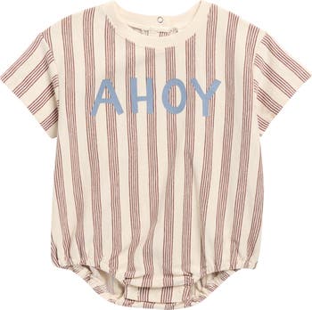 An adorable stripe pattern brings nautical charm to a warm-weather bubble romper made from supersoft cotton and featuring convenient snaps for easy changes.