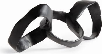 This cast aluminum objet is a modern take on the oversized chain link trend. Hand crafted using a centuries old sand-cast method, a striking accent for coffee table, console or bookshelf.