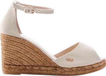 Aiguafreda Canvas Espadrille Wedges: Sleek High Wedge Ankle Strap Espadrilles Be the star of the show wherever you go with our sleek and stylish Aiguafreda canvas espadrilles! These stunning women's espadrille shoes feature a comfortable 3.5-inch high jute wedge and an elegant open cross-toe design. Crafted from 100% breathable cotton canvas, these are indeed very comfortable espadrille wedges, perfect for all-day wear. Each pair of these authentic Spanish espadrille wedges is meticulously handmade in Spain by skilled artisans using traditional methods, ensuring exceptional quality and timeless appeal. Step out in confidence and comfort with these beautiful summer espadrilles.