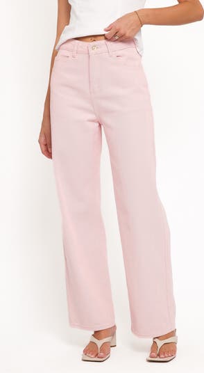 Pastel-hued denim brings charm and whimsy to these nonstretch jeans cut with a high waist and balanced by of-the-moment wide legs.