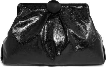 Delicate pleats and a logo-engraved, circular clasp elevate a spacious clutch outfitted with an optional chain strap for hands-free wear on your next night out.