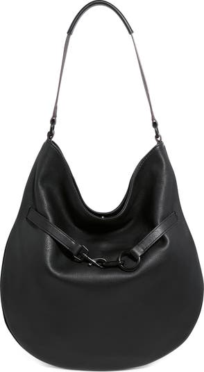 Polished hardware plays up the contemporary style of a perfectly proportioned hobo bag that's an everyday go-to.