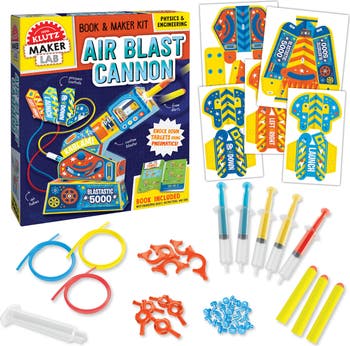 Ready, aim, blast! Using the fun and clear instruction book, construct a moveable, air-powered cannon and fire away at the included targets. Makers will explore the physics of projectiles, the mechanics of pneumatics, and how they work in everyday machines -- like bicycle pumps! Continue the fun with experiments that harness the power of air. Recommended ages 8 years and up. WARNING: CHOKING HAZARD -- Small parts. Toy contains a small ball. Not for children under 3 yrs.