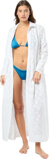 Draped for an oversized fit, this button-down shirtdress comes in our lightweight linen-Lyocell blend fabric with allover embroidery. It has drop shoulders and long sleeves featuring cuff ties, a spread collar and soft gathers along the waist seam.