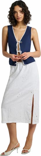 - The linen-Tencel construction of this midi skirt makes it ideal for a vacation wardrobe. It has an adjustable drawstring at the mid-rise waistband, giving it a comfortable look and feel.