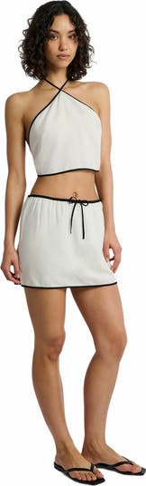 - Featuring solid trim for contrast, this miniskirt has a simple, versatile shape that makes it easy to style. It’s cut from our linen-Tencel fabric blend and has drawstrings at the mid-rise waist.
