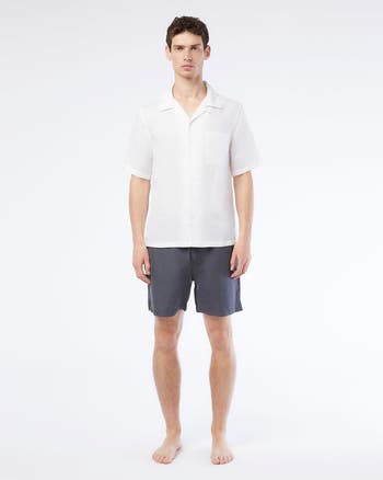 Offered in a linen-tencel blend, our tailored Linen Pull-on short has a stretch waist, embedded with drawcords featuring metal logo tips, a patch pocket in the back as well as two slash pockets in front.