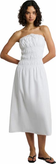 - An airy, lightweight design, this maxi dress joins a smocked bodice to a free-flowing skirt, made in a blend of linen and Tencel. Embedded ties running through the top edge draw in the strapless neckline.