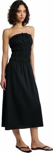 - An airy, lightweight design, this maxi dress joins a smocked bodice to a free-flowing skirt, made in a blend of linen and Tencel. Embedded ties running through the top edge draw in the strapless neckline.