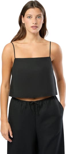 - This cropped Air Linen Square Neck Tank is draped with a slight cowl in the back as well as slim ties and adjustable straps that frame the shoulders.