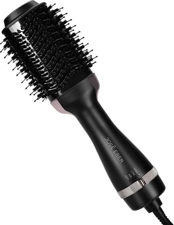 JOSE EBER: AIR STYLE BLOW OUT BRUSH - Powerful performance and innovative technologies ensure a perfect look! The Jose Eber Air Style Blow Out Brush quickly Styles, Dries & Volumizes your hair in just one step and gives you a perfect blow out result as if you just came back from the hairdresser! Ergonomic, lightweight design allows for maximum control and styling comfort. The brush head with gently rounded edges will give you effortless volume and smooth, even finishes. Firm, nylon pins and softer bristles for easy detangling, improved volume and ultra fast performance. This Air brush has a tourmaline ceramic barrel. Ceramic provides better heat distribution throughout the plate, eliminating hot spots that burn and damage the hair. With 3 temperature and 2 speed settings, this makes it the ultimate styling tool for any hair type. HOW TO USE: Towel dry your hair for quicker results. Brush your hair thoroughly after washing; this helps prevent tangles. Divide your hair into 4 sections, not too much hair per section. When blow-drying, go from top to bottom. Tip: hold it close to the roots for an extra volume boost for 2 to 3 seconds. To curl your hair, start at the tips and hold for 2 to 3 seconds, then slowly begin to twist. KEY FEATURES: 1000 watts of drying power, 75 mm oval tourmaline ceramic barrel, 3 temperature and 2 speed settings, anti-static ionic technology that reduces hair damage, frizz and fly-aways.