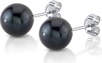 Richly toned black Akoya pearl stud earrings offer a modern, sophisticated alternative to classic white pearls with an elegant hint of iridescent depth.
