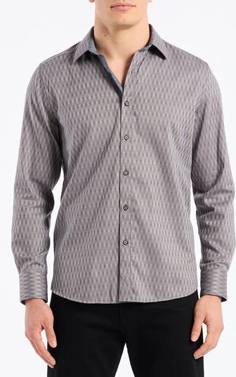Patterned in a mesmerizing check print, this crisp cotton shirt features a touch of stretch for easy-moving comfort and a look that works whether you wear it tucked or untucked. Pop the collar or roll the cuffs to unveil a contrasting but equally cool print.