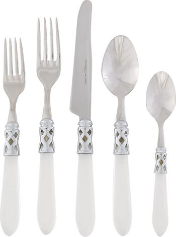 Hand-shaped and hand-polished Italian acrylic forms the handles of stainless-steel flatware that's an elegant addition to your table setting.