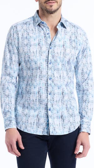 Effortlessly cool, this long-sleeve button-up shirt is cut from stretch-enhanced cotton and finished with a mottled print making it ideal for any warm-weather occasion.