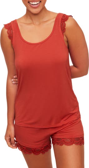 Our Alaina pajama set features soft breathable knit fabric and delicate lace detailing. The lace open back, lacy cap sleeves, and soft knit fabric make this set both comfortable and romantic.