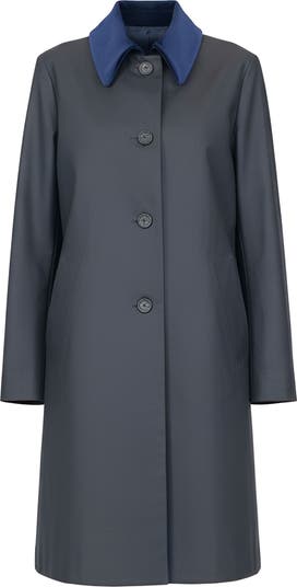 Alaine is a trim, button front coat made in a water resistant Italian canvas with a velvet collar. The coat is finished with interior thermal tape for further water resistance.