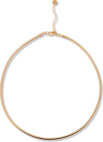 A snake-chain collar necklace pairs perfectly with your minimalist aesthetic, while also shining brightly on a more layered look.