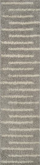 Inspired by vintage Moroccan rugs, our modern striped rug has a soft, low shag pile. The central stripe pattern is woven in gray on an ivory background; our -inspired design recalls traditional handwoven rugs. Add some Bohemian style to your living room, bedroom, or reading nook with this easy-care rug.