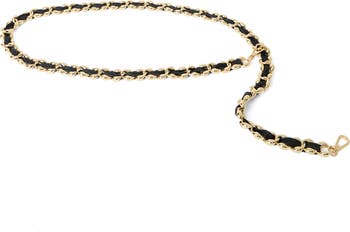 Curving chain links pair with lustrous leather on a delicate belt secured with lobster clasp closures.