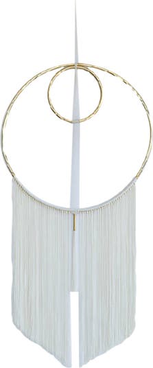 A beautiful, handwoven wallhanging made by artisans in Mexico using a brass ring and 100% nylon yarn.