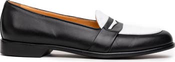 A striking two-tone leather upper emboldens a signature Italian-crafted loafer built with interior cushioning for a supportive fit on casual or semiformal occasions.