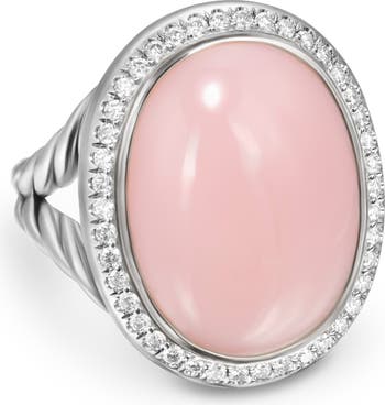 Glittering pavé diamonds halo a lustrous pink opal cabochon on this split-shank ring done in the label's signature cable texture.