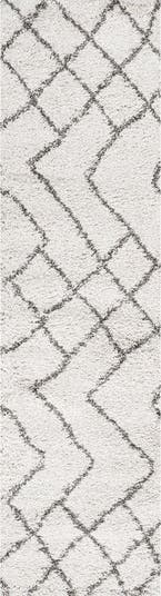 Inspired by vintage Beni Ourain Moroccan rugs, our soft and fluffy shag yarns make it easy to go barefoot. The classic Moroccan pattern has deep gray diamonds on a field of ivory. Anchor your Bohemian space; add softness to a bedroom, living room, or cozy reading nook; this is a shag rug with timeless style.