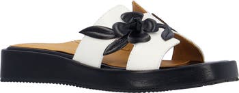 A dimensional floral appliqué adds a breath of fresh air to this effortlessly chic slide sandal grounded by a cushy and supportive footbed.