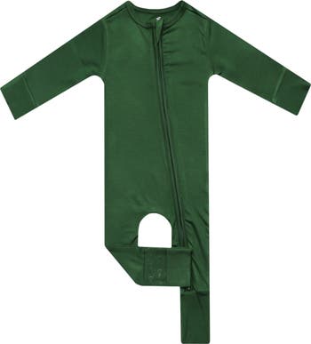 A cozy footie knit from ultrasoft stretch-jersey is equipped with a two-way front zipper for easy outfit changes and diaper checks.