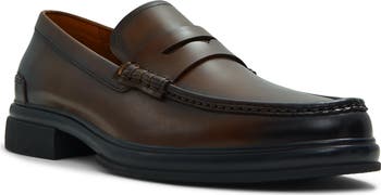 A classic penny keeper and rich leather lend luxe elements to a sophisticated loafer set on a cushioned footbed and flexible rubber sole.