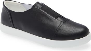 A wide elastic band at the vamp provides slip-on ease to a sporty-chic sneaker designed with a signature arch-supporting and cushioned insole.