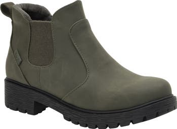 A waterproof finish and fuzzy fleece lining enhance the cold-weather utility of a classic Chelsea boot grounded by an arch-supporting insole.