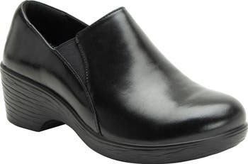 A slip-resistant wedge perfects the all-day ease of this classic clog-style, slip-on shoe designed with elastic side goring and a padded collar.