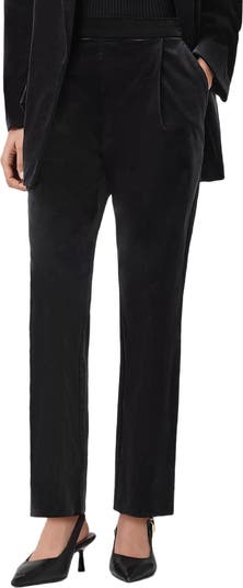 Narrow pleats and tapered legs bring a sleek look to these pants cut from stretch sateen with a bit of luster.