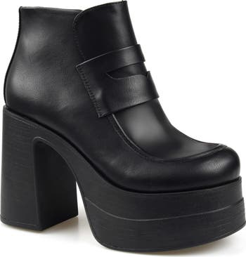 A penny-keeper detail adds an extra touch of refinement to this outfit-making bootie set on a wood-grain platform sole.