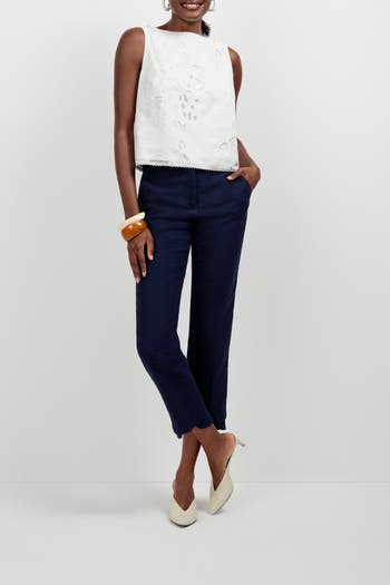 Sleeveless eyelet top with button detail at the shoulders