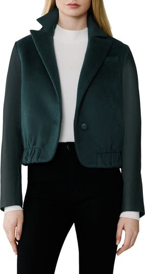 This cropped jacket made from a rich wool blend with leather-covered buttons will add verdant color to your wardrobe.